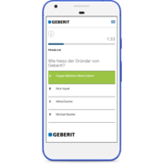The first of the campaign rounds was a traditional quiz in which users checked their knowledge about the Geberit brand. Both questions and answers were served by our backend. The quiz also returned at a later stage of the campaign, this time offering players a new set of questions.