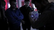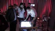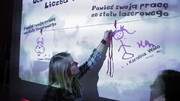 Robert Lechowicz z Lab^180 prezentuje zasadę funkcjonowania interfejsu multi-touch stołu dotykowego.
