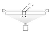 W celu uzyskania płaszczyzny, (laser emituje skupioną wiązkę) zastosowaliśmy generatory linii laserowej o kącie 120 stopni (w praktyce wystarczą generatory 90 stopniowe). Takie rozwiązanie sprawia, że kamera widzi punkty styku palców z polem.