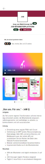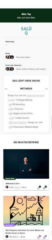 Nasza agencja partnerska Jung von Matt / Limmat w ramach realizacji swojej strategii digitalizacji i budowania przyjaznego miejsca dla pracowników zwróciła się z propozycją współpracy przy budowie platformy intranetowej dla pracowników Q zoptymalizowanej pod urządzenia mobilne.