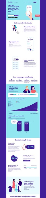 Działania proaktywne, szczególnie dotyczące pieniędzy to wyzwanie samo w sobie, szczególnie jeśli chodzi o czas odległy jak emerytura. Życzeniem klienta było stworzenie jak najbardziej przejrzystego serwisu oraz aplikacji, tak aby wszystko było "czarno na białym" bo w kwestii Twojej przyszłości - wszystko powinno być jasne jak słońce. Kampania posiada również cele społeczności, gdzie im więcej ludzi zadba o swoją przyszłość z frankly, tym mniejsza będzie opłata dla wszystkich. Kampania rozbita jest również na kilka etapów a w każdym są różne kanały dotarcia do klientów - wymagało to również przygotowania szablonów stron które posiadają wspólne elementy, dzięki czemu zmiany będą wprowadzane raz - zamiast kilkunastu.